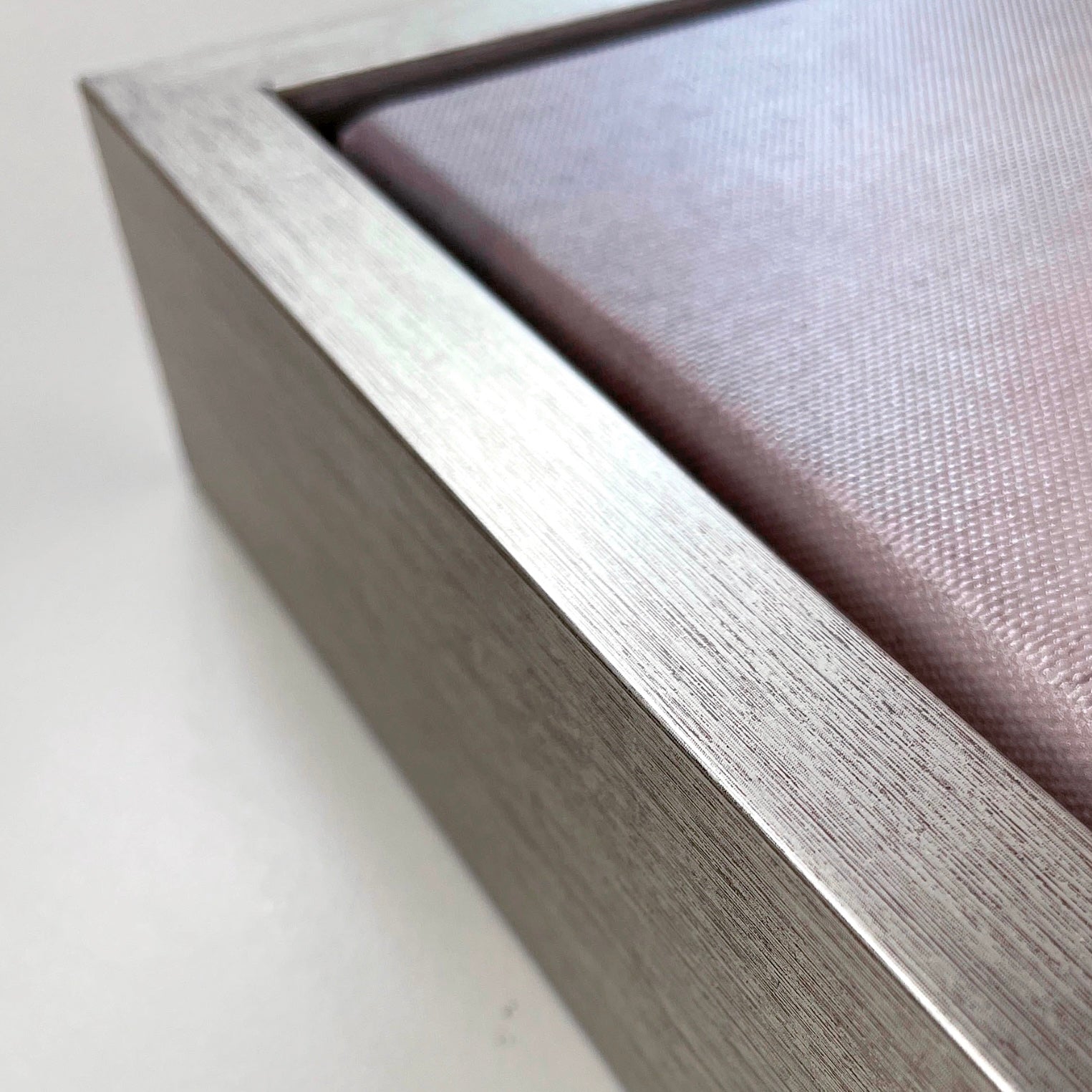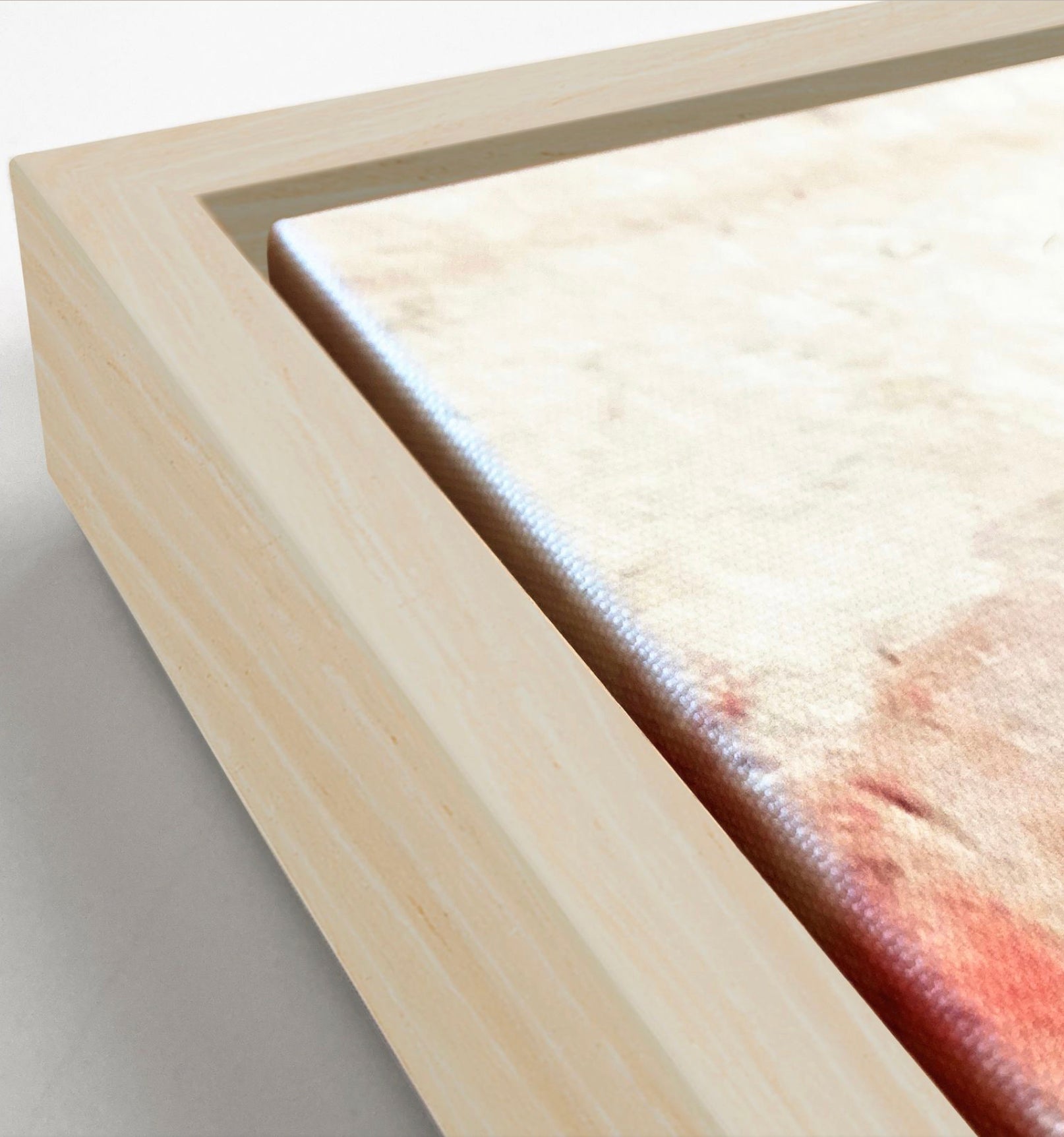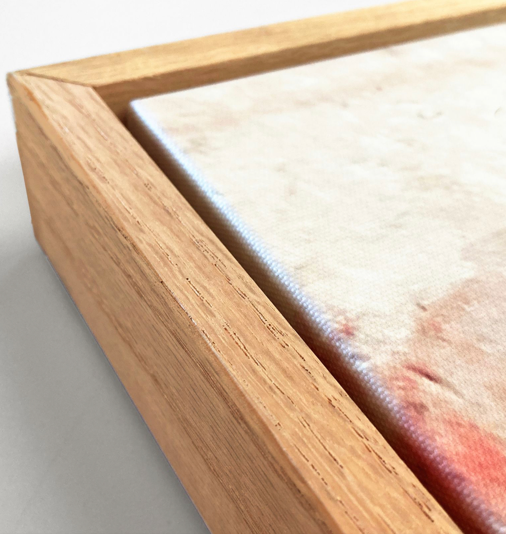 All canvas prints come with your choice of floater frames crafted from 100% wood, ensuring a weighty, premium feel. Natural wood grain adds authenticity and enhances the overall texture of the frame. Hanger hardware included. Finishes available shown below: black, white, silver, oak, maple and gold.